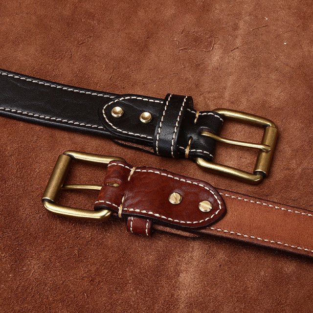 1.5″ Genuine Leather Belt with Brass Pin Buckle – Thick Cowskin Strap