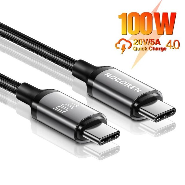100W USB-C to USB-C PD Fast Charging Cable 5A Nylon Braided