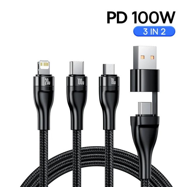 3-in-1 USB-C Fast Charging Cable 100W with Lightning & Micro USB Connectors