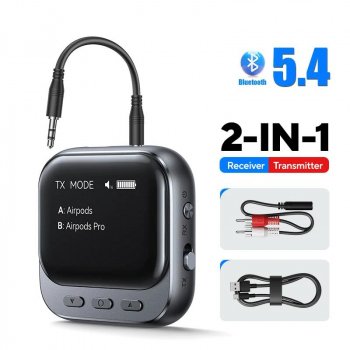 Car Bluetooth 5.4 Receiver Transmitter 2-in-1 AUX Adapter with LED Display – Hands-Free Calls & Car Music