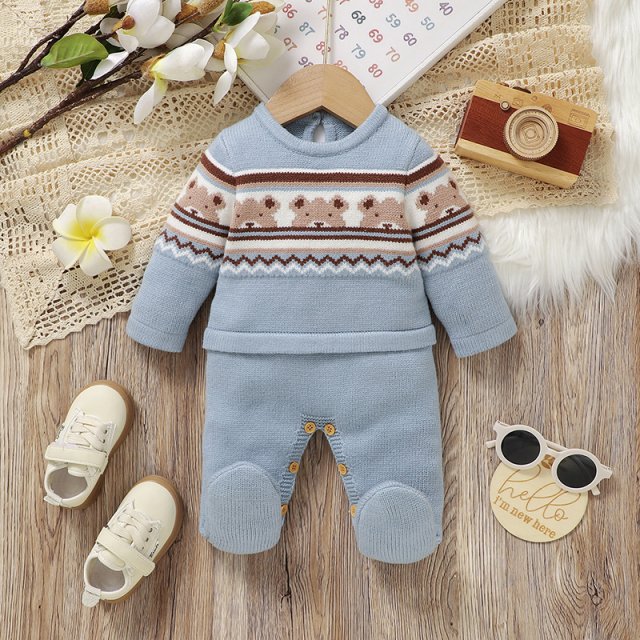 Gear up your little one for those autumn days with our Cute Knitted Baby Romper! Designed for infants aged 0-9 months, this charming overall features cute bear motifs that will make your baby the center of attention. With comfortable long sleeves and a foot wrap design, this romper is perfect for keeping your baby warm and stylish during the cooler months.