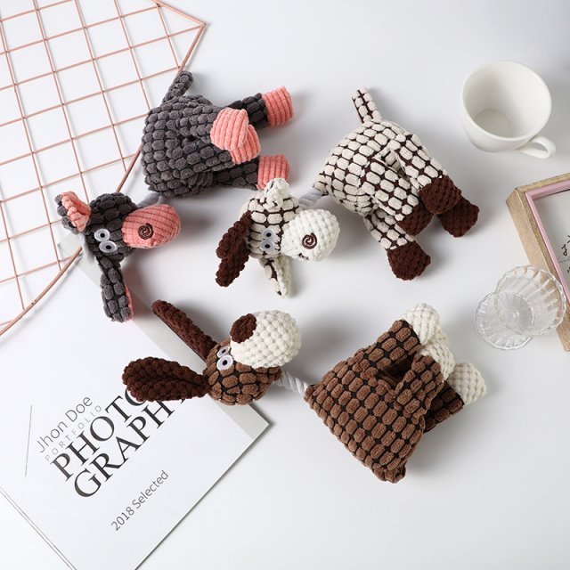 This cute and playful donkey-shaped chew toy is the perfect companion for your dog or puppy. Made from soft yet durable plush corduroy, it’s designed to satisfy your pet’s chewing instincts while being gentle on their teeth and gums. With an engaging built-in squeaker, this toy keeps your furry friend entertained and encourages active play, making it an ideal choice for training, bonding, or simply burning off extra energy.