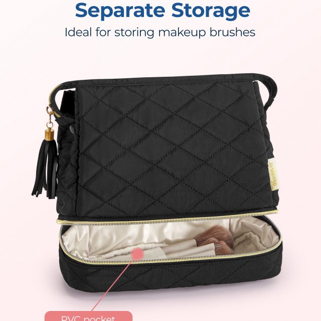 Double Layer Makeup Bag with Wide-Open Puffer Design
