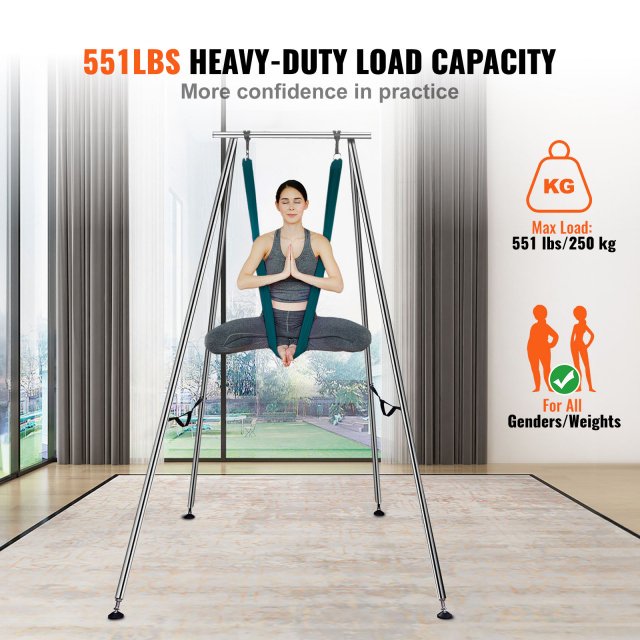 This Aerial Yoga Frame and Hammock is excellent for anyone looking to enhance their fitness routine. It’s perfect for practicing balance and stability, improving flexibility, and building core strength. Whether you are a seasoned yogi or just beginning your fitness journey, this equipment makes it easy and enjoyable to integrate aerial practice into your routine.