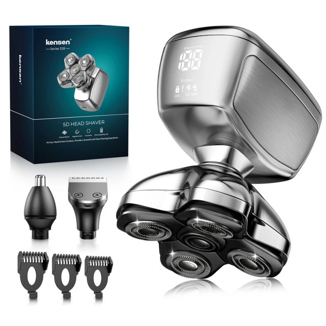 Experience the smoothest, closest shave every time with this advanced 5-in-1 electric grooming solution. Designed for bald head shaving, beard trimming, and precision hair clipping, this versatile shaver is built to keep you looking sharp and confident every day. The 5D floating rotary head glides effortlessly over the contours of your head and face, delivering a clean, comfortable shave without irritation. Whether you prefer a wet shave in the shower or a quick dry trim, this waterproof shaver adapts to your routine with ease.