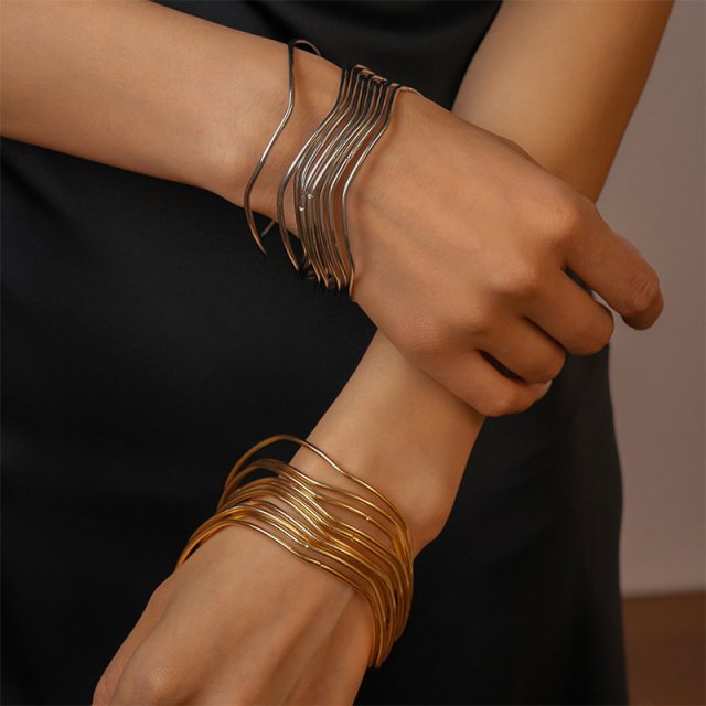 This bracelet shines brightest at gatherings where you want to showcase your fashion sense without saying a word. Whether it’s a lively party, a casual day out, or a special celebration, it complements your look with elegance and charm. Its distinctive metal waves and geometric pattern make it more than just jewelry — it’s a reflection of your personality.