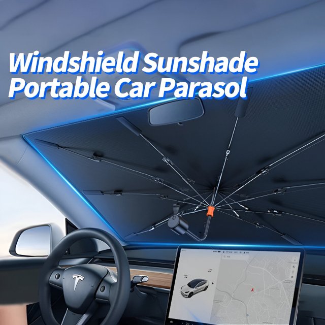 Foldable Car Windshield Sunshade with Bendable Handle for Tesla & More