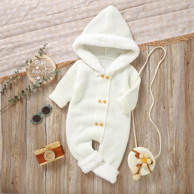 Wrap your baby in warmth and softness with our Knitted Baby Romper with Hood — the perfect outfit for cooler days. Designed for both baby boys and girls, this adorable one-piece romper combines everyday practicality with timeless style. Whether you’re heading out for a walk in the crisp autumn air or cuddling at home, your little one will stay snug and stylish all day long.