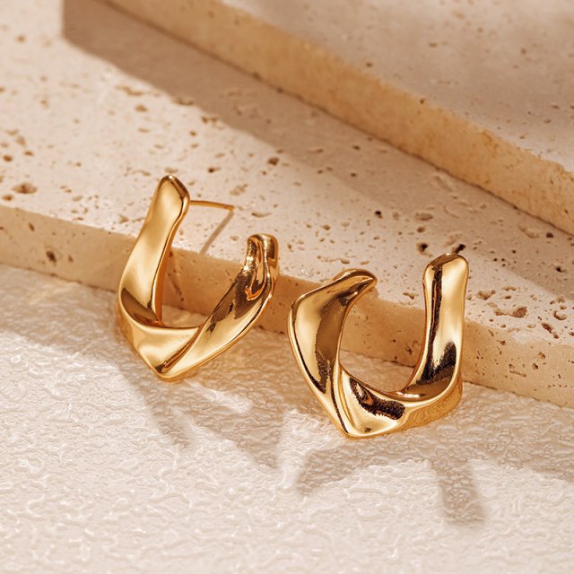 Metallic Vintage Irregular Stud Earrings for Women – Elegant Geometric Jewelry
