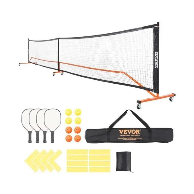 Portable 22FT Pickleball Net System with Paddles, Balls & Court Lines